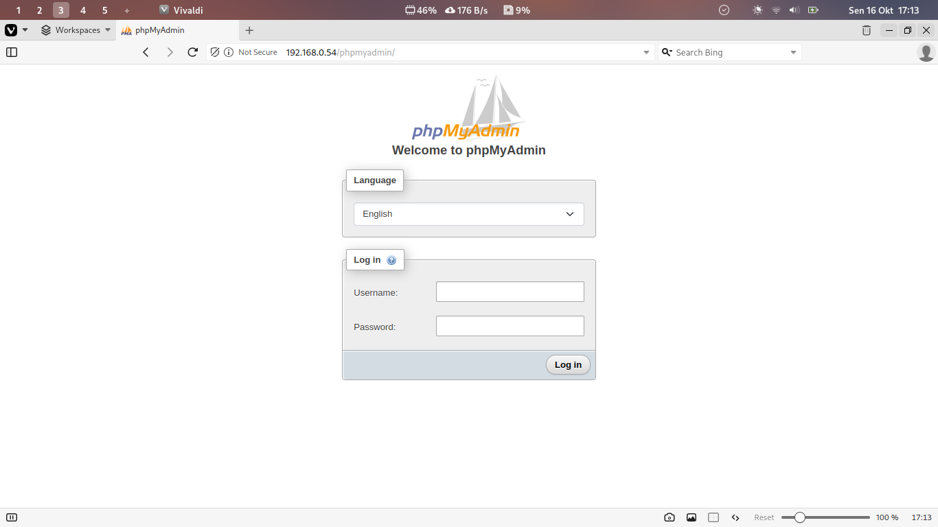 Selanjutnya untuk melakukan pengulian, kita dapat mengakses alamat server yang kita miliki ditambah dengan direktory phpmyadmin seperti dibawah ini.