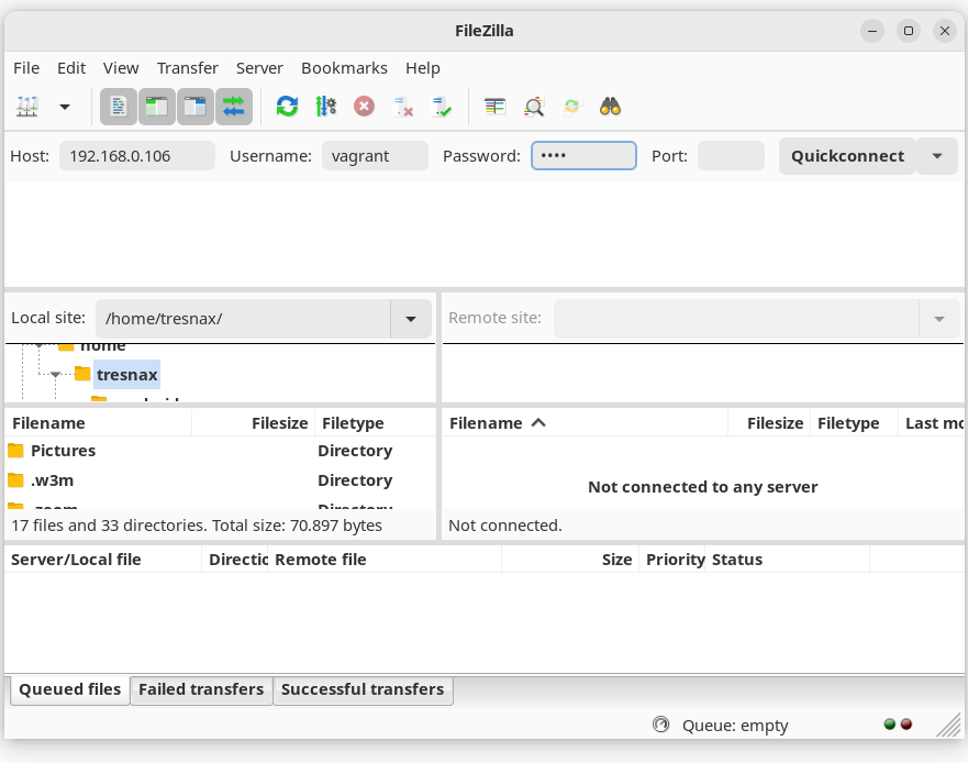 Disini saya menggunakan aplikasi Filezilla, buka aplikasinya lalu isikan informasi dari host, user dan password dari server Redhat yang kalian miliki lalu klik Quickconnect.